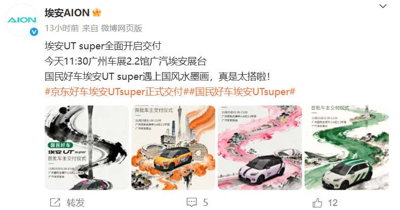 11月25日,广汽埃安官微宣布,京东联合宁德时代、广汽集团推出的“国民好车”埃安 UT super 官宣全面开启交付,首批车主交付仪式在广州车展广汽埃安展台举行。该车搭载“广汽华为云车机”技术,配备 500km 续航大电池,可充可换,电池租用购车价仅 4.99 万元,整车购买价为 8.99 万元。 埃安 UT super 与 2025 款埃安 UT 保持高度一致,采用两厢车结构,定位为纯电小型车。车身尺寸方面,UT super 长宽高分别为 4270/1850/1575 毫米,轴距 2750 毫米,标配 16 英寸轮辋,还可选装 17 英寸轮辋。 内饰方面,埃安 UT super 延续了 2025 款埃安 UT 的设计风格,配备双辐式方向盘、悬浮式仪表和中控屏,以及怀挡式换挡杆。车内提供两种内饰配色方案,前排座椅支持 180 度向后放平。此外,该车搭载华为云车机系统,支持 AI 语音大模型以及鸿蒙、苹果、安卓等多种手机与车辆互联功能。 动力系统方面,埃安 UT super 搭载的电机最大功率为 100 千瓦,最大扭矩为 145 牛・米,配备宁德时代磷酸铁锂电池,CLTC 续航里程达到 500 公里。值得一提的是,埃安 UT super 的换电时间仅为 99 秒。 |